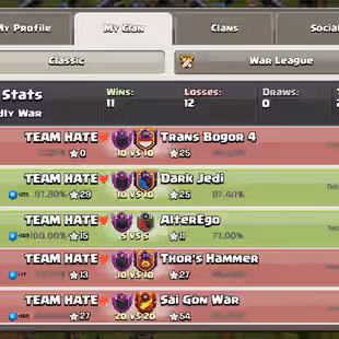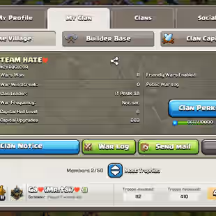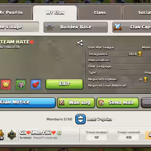🌟CLAN NAME [ TEAM HATE] 🌟| CLAN LEAGUE MASTER 2 | CLAN LEVEL 12.8 | WAR LOG 11 WIN 12 LOSS | CLAN CAPITAL 6