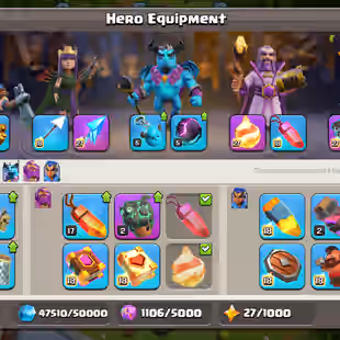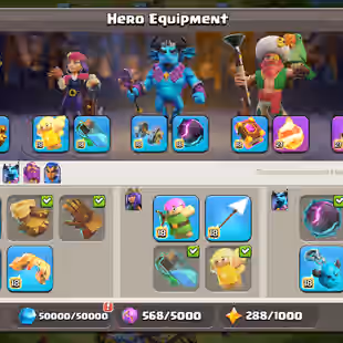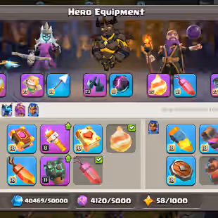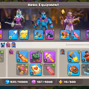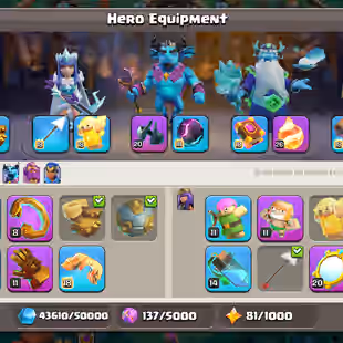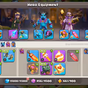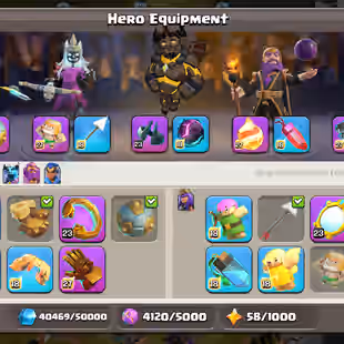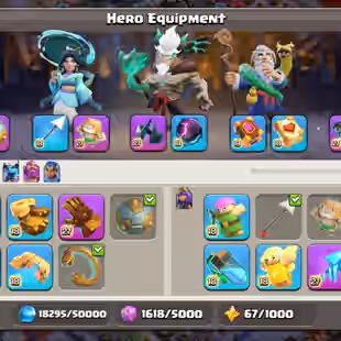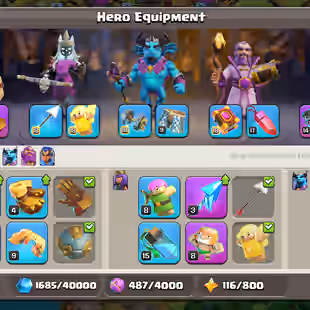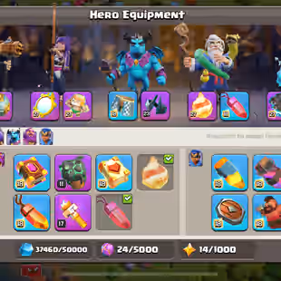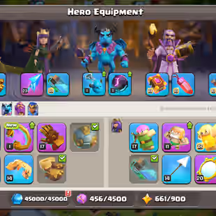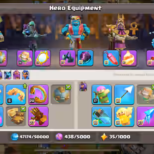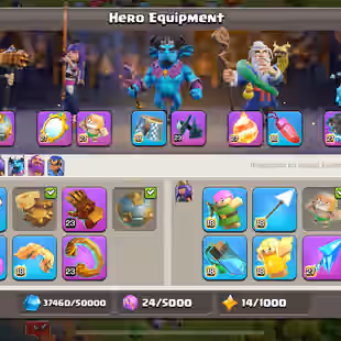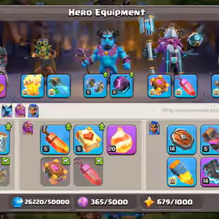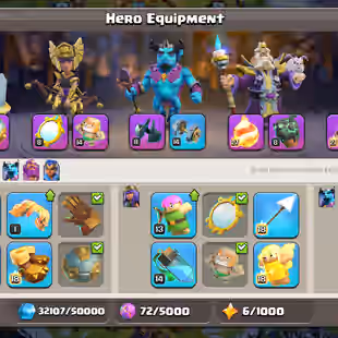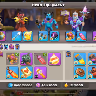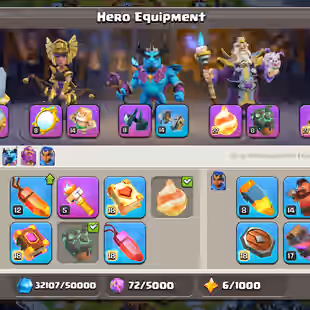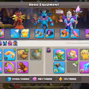 TH 14 FULL MAX | 5X HERO MAX [ 80-80-60-55-30 ] 9 EPIC EQUIPMENT | NC-FREE | 207 MEDEL | 6 BUILDER | 194 XP LEGEND HIT