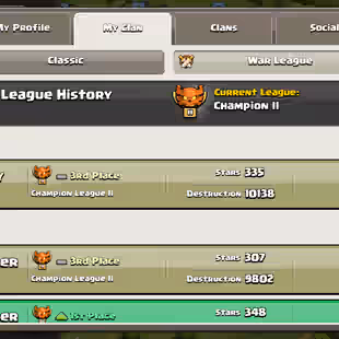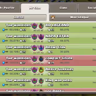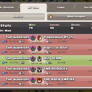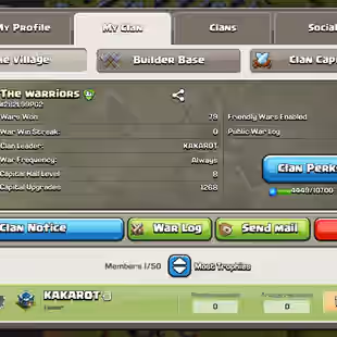 Nice Name [ The Warriors ] Clan level [13] Clan Capital-8 Max | Gold League 3 | War log win [79] positive | Instantly de