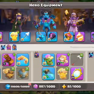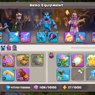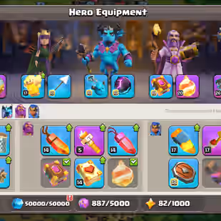CHEAP DONATION | TH 17 MAX | 6K GEMS 822 MEDEL | HERO [ 52-57-42-48-12 ] GG-MAX FB-20 EB-14 RS-14 STARRY ORE-679 XP-194