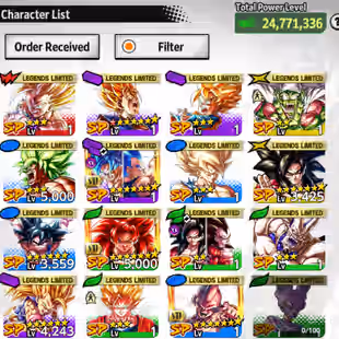 INSTANT[CNL T625]6UL(Beast Gohan 14s Turles14s Majin Vegeta 12s ) LF Ultra Instinct Sign Goku 7s GodLyEquip 45 LF